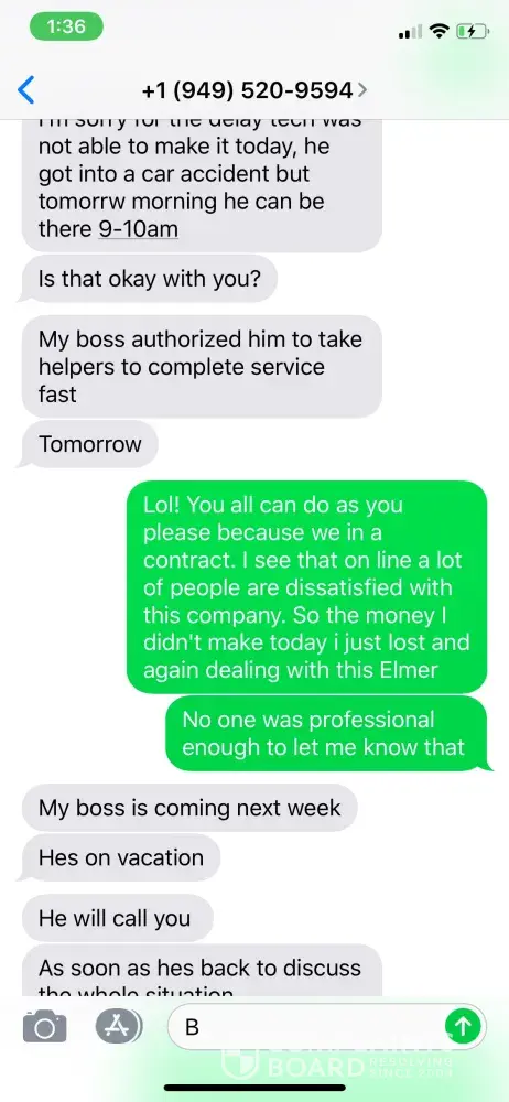 The following Tuesday my husband gets a call from the owner stating that it's our fault it's not fixed because they tried. This company is a joke.