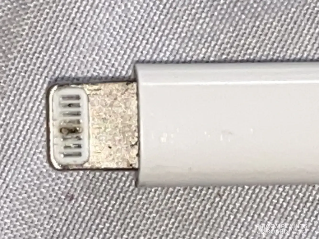 Apple is no solving the serious design shortcoming of apple's lightning male connector; it has 8 pins on each side, the pin #5 is for power, which is the one that fail more often for almost a decade.