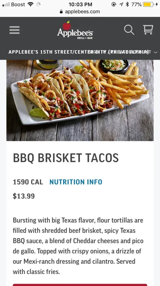 We just ate, September 7, 2018, at Applebee's in Seymour IN. The food was terrible, over cooked fried shrimp, nachos were dry, like they sat under the heat lamp too long waiting for pick up. The food was of very poor quality. My grilled chicken was fatty and very dry and over cooked, not to mention the soggy veggies.