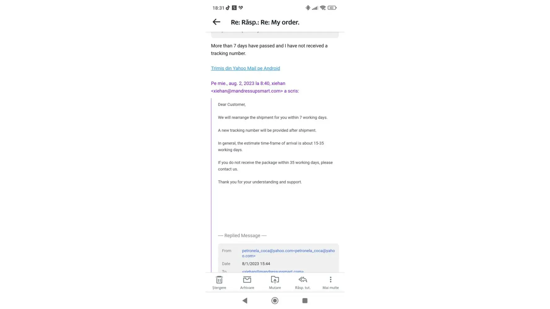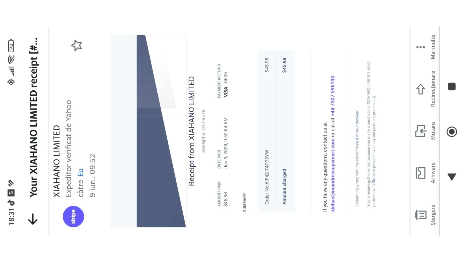 I placed the order on June 9th with this company and even until today, August 26th, I have not received anything. I have contacted them through countless emails without any response .The money was taken from the account but the order has not arrived, you always find excuses in every email I send.Order number 6IF42-74P73 YW.Amont paid $45.98. Date paid Jun 9 ,2023,9:52:54 A M