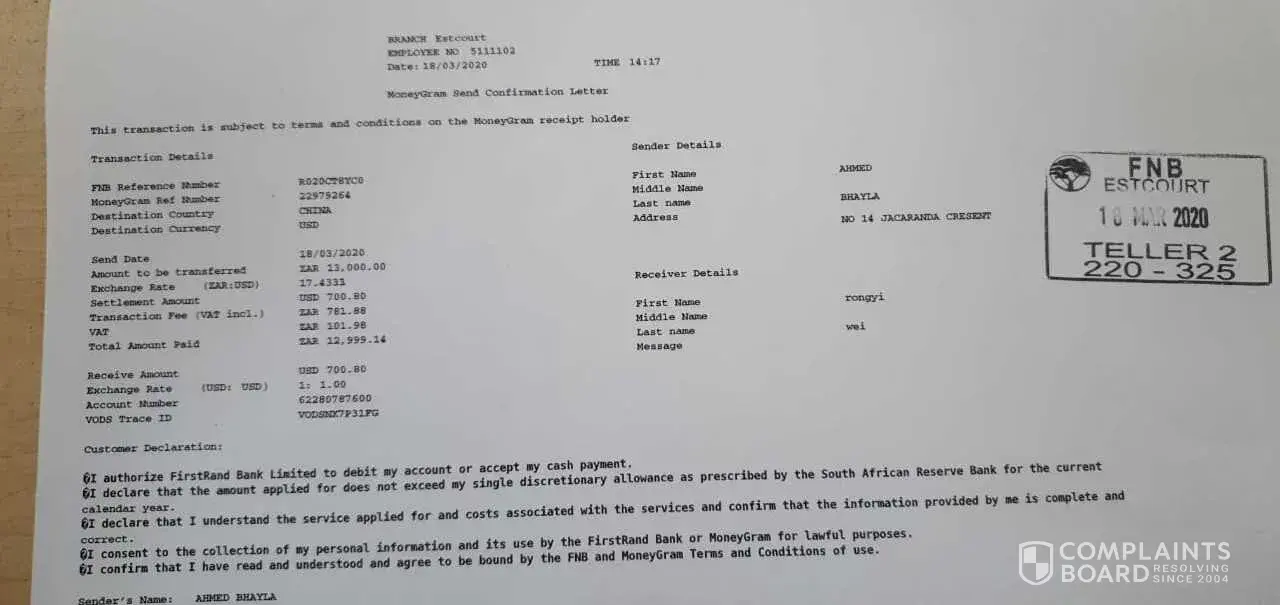 Hi I'm from south africa and I bought a sewing machine for 400 dollars with shipping via Alibaba. It was due to arrive on the 6 march 2020. I after a few days I was told by my supplier to pay 720 dollars for clearance charges then another 810 dollars refundable insurance for then 600 dollars delay charges then the courier is not licensed to deliver in South...