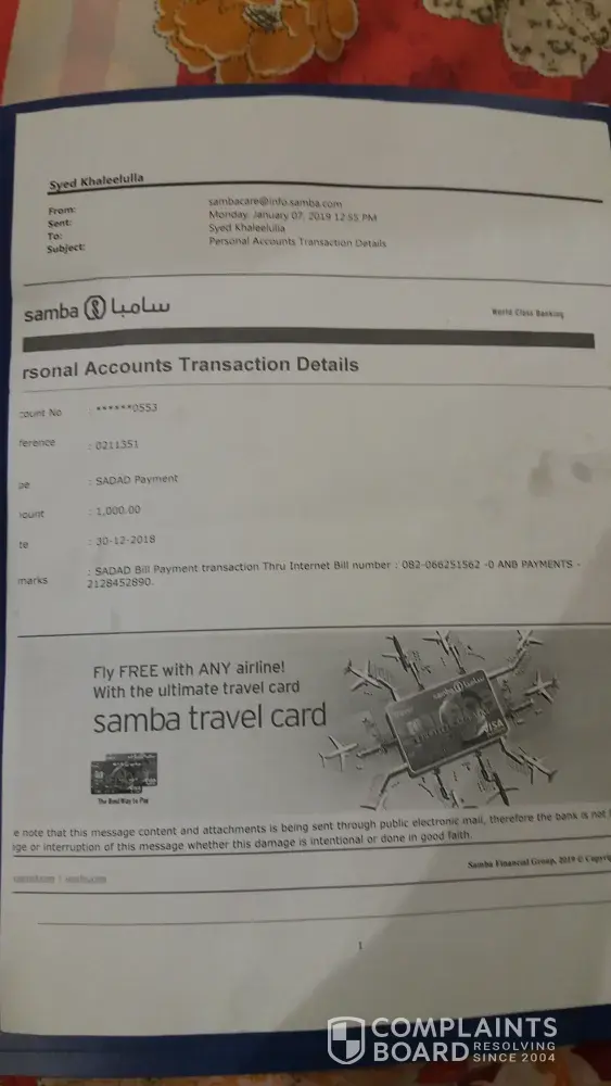 I have already paid my car loan payment for december 2018 through samba online banking.