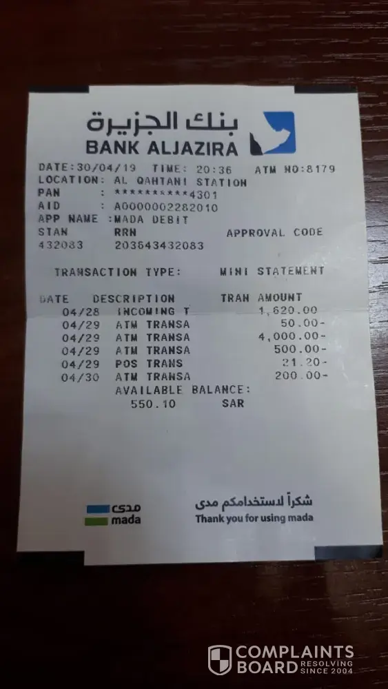 I am ANB Account holder and on 29 April 2019 i withdraw 3 times cash from Albilad ATM