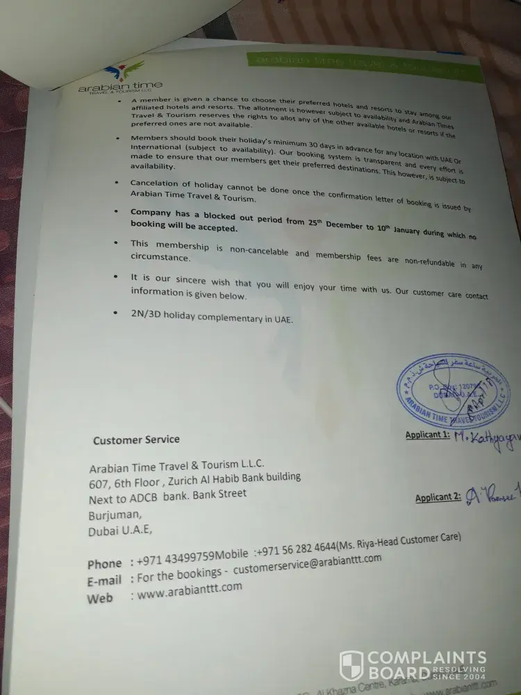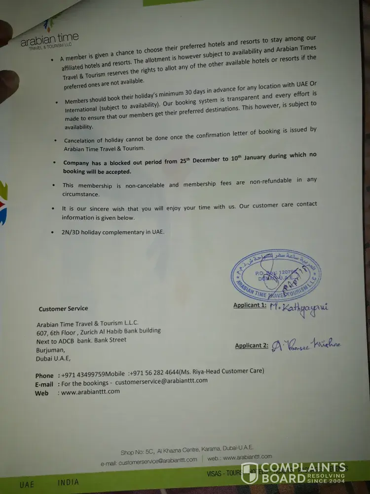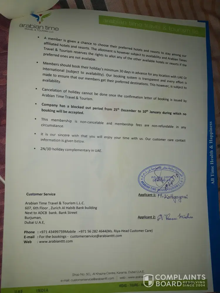 Arabian Time Travel Tourism — 105 days holiday ownership...Thin we can complain herein this website ...