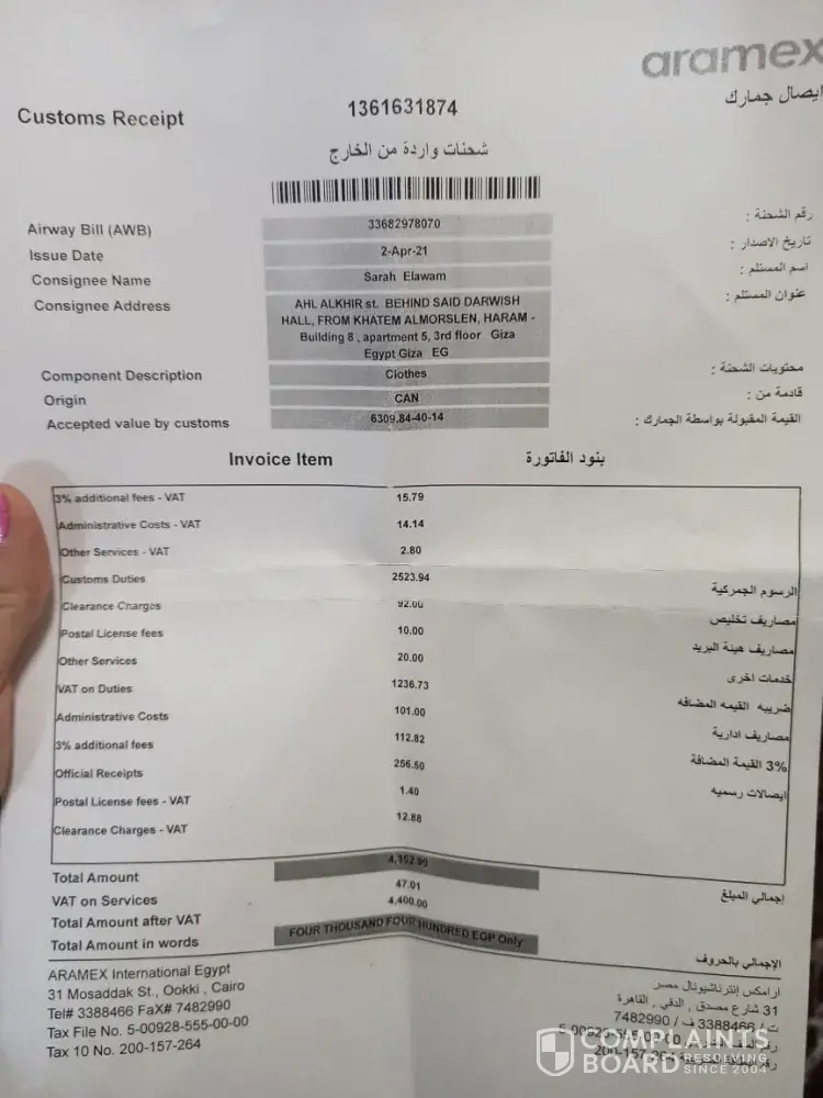 ARAMEX egypt New Cairo Branch lost my shipment which was a confidential letter