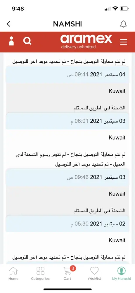 Hello. Ever since the beginning of the year, the service of Aramex in kuwait has been abysmal, as well as the offices in Tokyo Japan and Malaysia. Any shipment I order, and most of the time they are multiple shipments at a time for both locations, are always delayed by more than a month since it arrives to the origin office, until it's either delivered to me or I go and collect it. A current shipment on it way now arrived to tokyo office on the 16th of August, and was lost to the people there, and only entered my account after 2 weeks, on the first of september. That's a clear indication of abysmal work. Another shipment entered my account on the 31st of august, and till ow it didn't leave the office there, which makes me fear what kind of delay that might happen to the other 4 shipment available in my account. All of this is nothing compared to the terrible service that is happening in aramex kuwait. Their reasoning is they are locating to a new warehouse and too much work, plus problems with the customs. Why would an air shipment take upto five days to be cleared from the airport? Does sorting a shipment take up-to a whole month? Is that what we as customers should expect from you, with all the history of great service you provided us through the years? I call the service call center daily, and send requests daily inquiring about the shipments, and there is no satisfactory response from them except the inquiry has been escalated. You need better employees that. An troubleshoot the problems we are facing. They don't even respond in time to any inquiry, and don't solve any problems. I am sorry to say, but the service is crap. The operations division in kuwait is terrible and needs an overhaul. And after all that, you don't even try to appease the customers by discounts or offers or anything. You expect us to eat a dirt sandwich and just shut up and take the indignity you subject your customers to. Please do better. Other countries like egypt, people get their shipments in less than a week from shipping from origin country. Are you telling me that kuwait has more work than egypt? And COVID is really an excuse now. An example of what I am talking about is attached for your reference. See the dates and you will get what I am talking about.