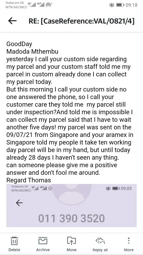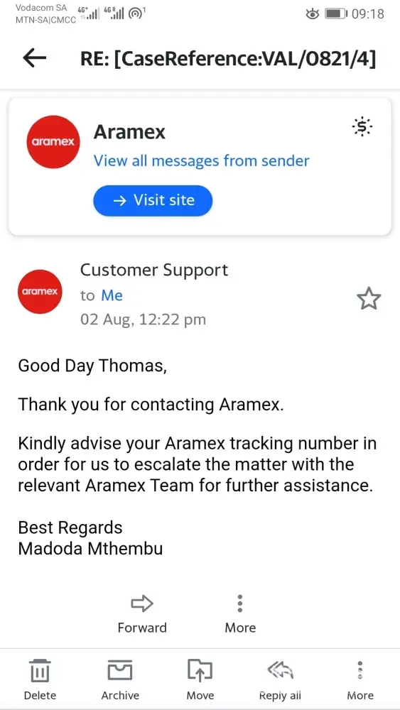 Aramex International extreme delay on parcel delivery, staff attitude