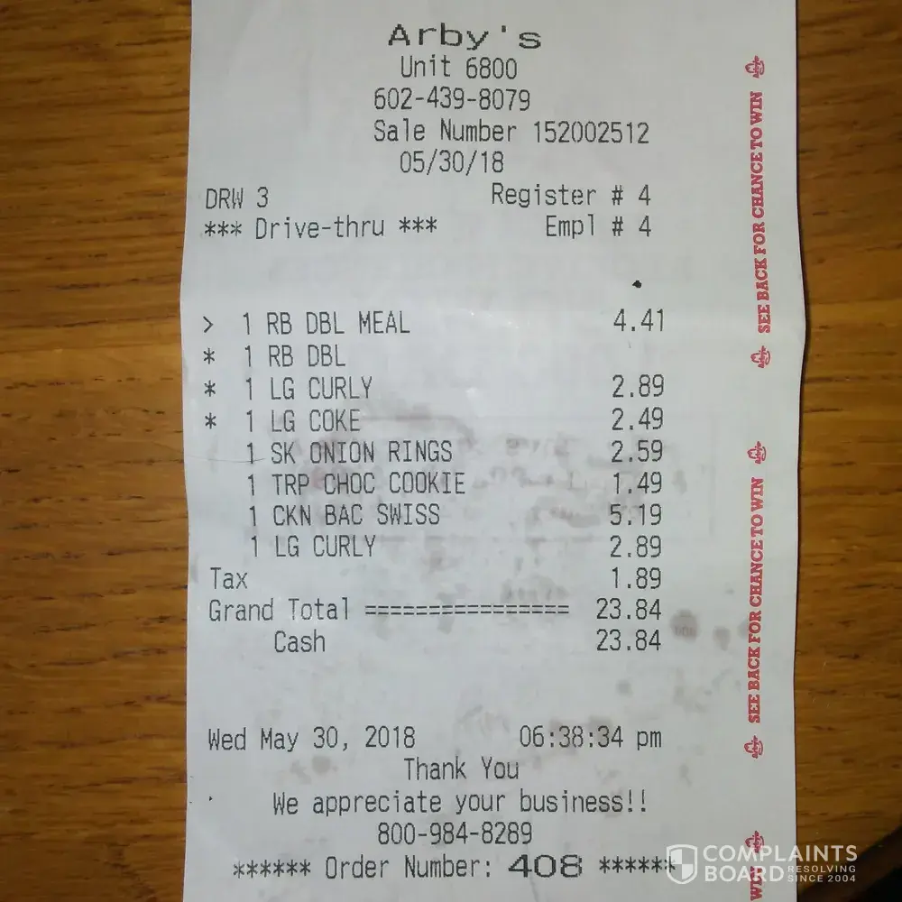I hope I hear from Arby's regarding this matter..I was very disappointed..