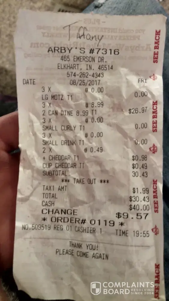 My fiance went through the Arby's drive-thru on west bypass springfield mo unit #8274. When he got home with our family's orders, we realized the large order of jalapeno poppers were not in the bags. They did charge us $4.99 for them. Tried calling the store at [protected] at 9:06 pm and got an answering machine. Not good customer service at all.