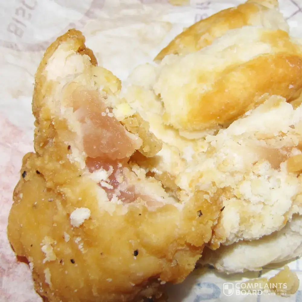 Today I received a chicken biscuit for breakfast this morning. After eating half of it, I realize it was severely undercooked, or should I say not cooked!