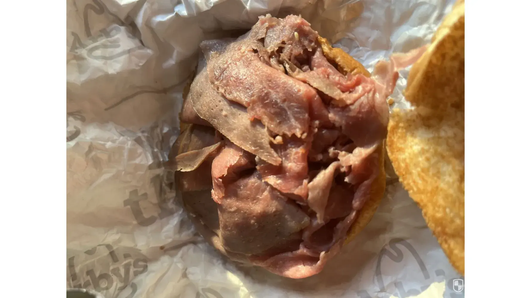 On August 13, 2022 at approximately 11:00AM we ordered at the drive up window 6 Arby's Classic Roast Beef Sandwiches with a coupon that these were $2.50 each...total w/tax came to $16.52. We had to wait a bit and finally the worker hands the bag with 6 sandwiches out the window. So..we get home and I'm taking the sandwiches out of the bag...opening up each sandwich and could NOT believe what I saw...instead of the meat being nice slices on the bun...there were tons of bit of burnt meat particles in the slices...did NOT look like freshly cooked meat (wondering if it could have been leftover from the previous night shift?)...and it all smelled somewhat burnt. AND when I took a bite out of one sandwich, it did not taste fresh or very good with those burnt little bits. Now Arby's has always been my favorite fast food restaurant BUT if this is the way the restaurant is going to serve the roast beef sandwiches, I'll stop going to Arby's. This Kent Washington location I have never been to before (usually go to the Burien Washington one). But if this is the way the food is going to be sold/served to a customer I am leaning to quit going to Arby's This is refering to Order ID AADK6KY24AGAF next line says: DT306-DT Location: 6610 South 211th Place #101 Kent Wa 98032 Restaurant #8539