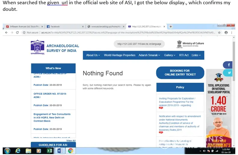 Please access the below given url which was appeared in one of the FB debates between two.Kindly confirm if the said material is an official posting of ASI. http://121.242.207.115/asi.nic.in/language-of-the-inscriptions/?fbclid=IwAR2HgHXde0J0nfpRQoNLDPwFBOR5OJkSVN0TeX0QbbLil8XY5GhWealQwcQ I have doubt on its integrity.
