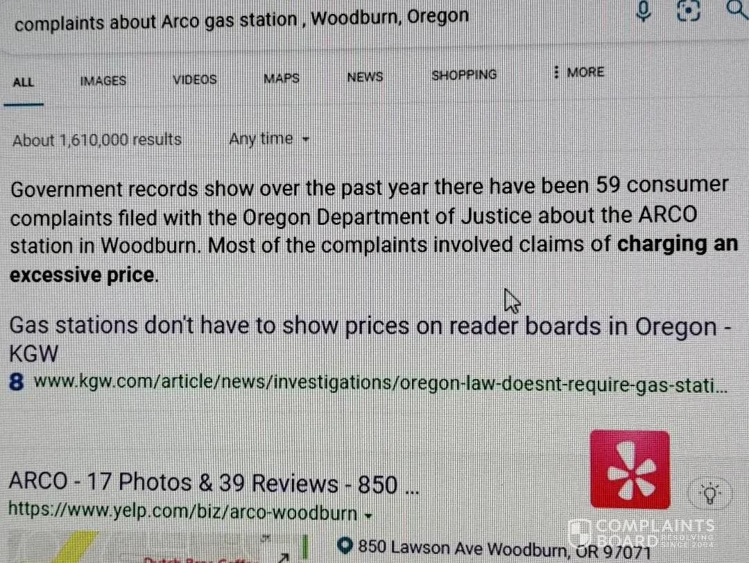 Are they intentionally overcharging? Seems so, as I have since researched complaints, and they have many. This doesn't seem legal and is definitely not morally okay or good business practice. I feel cheated and violated. Unfortunately, I will never visit an Arco gas station again because of this management's decision to cheat his customers. They have tarnished ARCO's reputation.