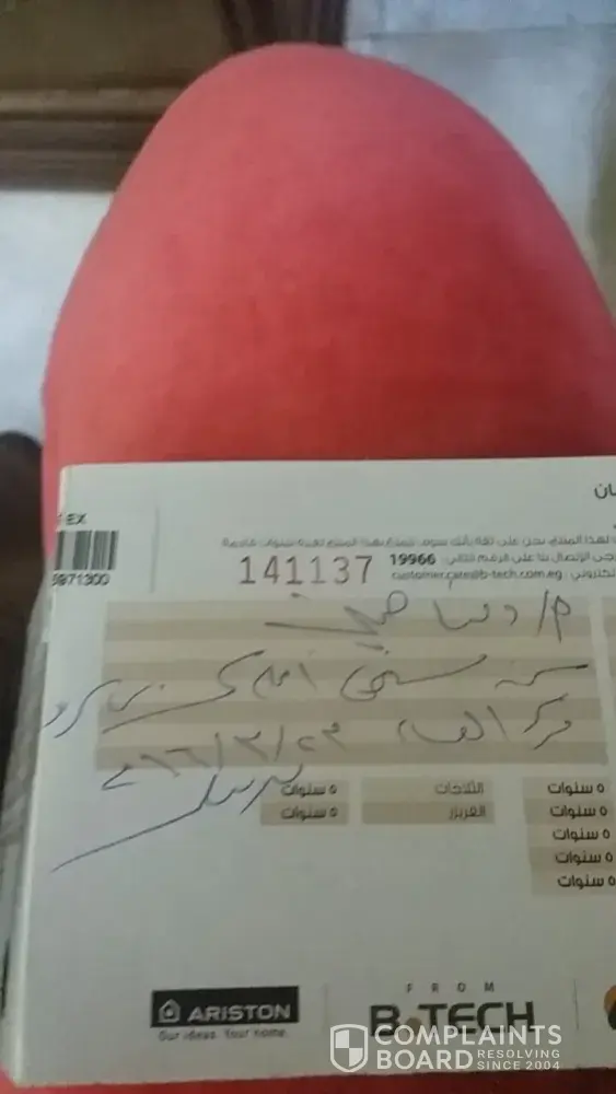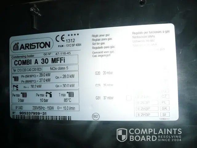 My complaint is that nowhere on the old hot water tank does it say that the tank needs servicing annually, and I had no instruction manual to say so. The hot water tank in my last house needed replacing after 30 years because of hard water, I have never heard of a hot water tank needing servicing. The tank has written over the box that corroded so badly 'Pro Tech anti-corrosion system' conveniently hiding the corrosion and my plumber said that the tank should have lasted at least 10 years. I wrote several times to Ariston, I said I had kept the tank for their engineers to inspect. They eventually sent a bog standard letter not addressing my grievance, I then sent photos and they replied by saying the tank should have been left in place for them to examine, ( that would have been a good winter with no hot water) they said there was nothing they could do and they enclosed an instruction print out for the hot water tank that had been replaced. I was astounded. I am a pensioner, I can ill afford the £1100 I have had to spend to replace the hot water tank that should have lasted at least 10 years, when in truth it barely lasted four and a half years. The least they could have done was to offer some sort of compensation. You do not expect to move into a brand new house with brand new equipment and to have to start replacing everything. Whatever you do don't buy Ariston!