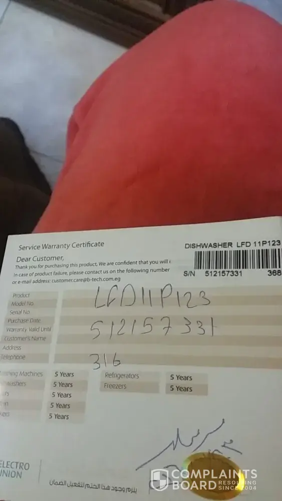 Now, the three are broken and have technical problems. The gas cooker wasn't working well so I called the customer service center here in Egypt which send me a technician after ten days from my call, the technician who lake any previous experience destroy the device completely and now the service center here told me the device need two thousand pound to fix what their technician broke. Second, I have the same process as above with my two deep freezer, one day I have electric false power, so my devices shut down and not working correctly after it, so as normal with any company I have products from it, I called the customer service center.