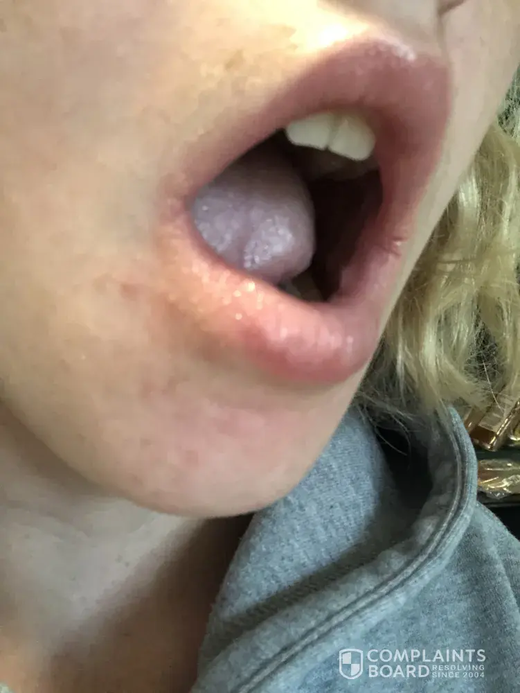 I began using it about a week after my cleaning. The first couple of days were fine. On about the fourth day I woke up with my tongue swollen, which was a bit disconcerting. I had also noticed that my throat was very dry throughout the night while I slept. I experienced progressing symptoms over the next couple of days, such as swollen lips, gums & further back on my tongue. I also noticed small ulcers under & on the sides of my tongue, and sores in the corners of my mouth. It was all excruciatingly painful, including not being able to eat or talk well.