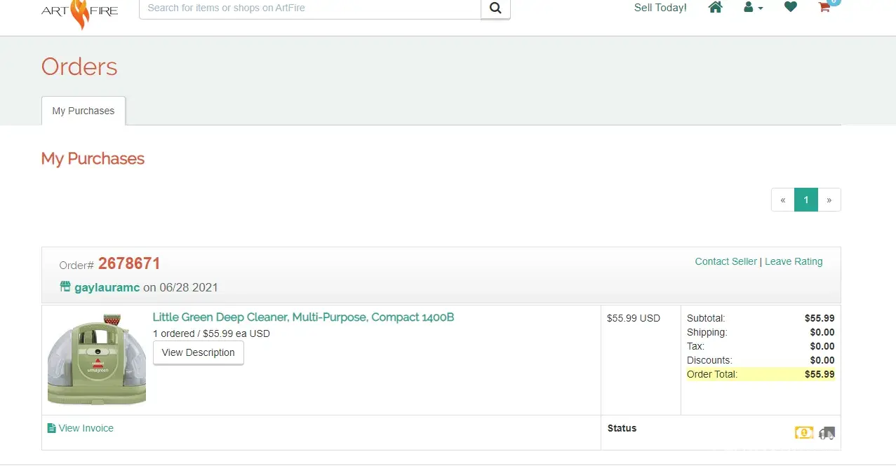 Update... Elusive artfire.com responded back to me after i made a complaint with the united states postal service fraud investigation team. Artfires response to me is they were not responsiable for a refund, to contact seller, the seller had deleted his account, i told them that. Artfire hasnt emailed me back on another response. I went to my bank and told them, they started a refund process to visa for me, visa will give me a refund. I had kept every email i sent to artfire and the ones i sent to seller that he never responded to, i showed them returned emails, i showed them the sellers artfire page showing he disapeered and my bank statements show he took my payment through my visa bank debit card. I have the emails to the USPS and the emails they sent me and emails from the law enforcement team for the UPPS. If you havent started doing what i did, start now, thats your evidence for getting your money back through your credit card company, good luck. I also think we should all get together and start a class action lawsuit against artfire. The sellers should be vetted! Credintials must be provided, they didnt and they are letting in scammers to scam us!