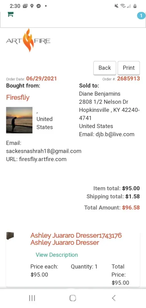 It's been a month since I purchased a dresser from firesfliy (no longer on artfire).