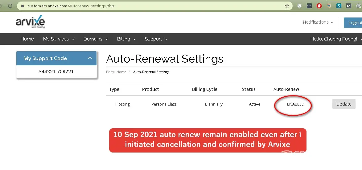 3. Even the auto renewal is confirmed cancelled through email, i check in the customer portal remain indicated as "auto renewal" enabled. I have to manually update it.