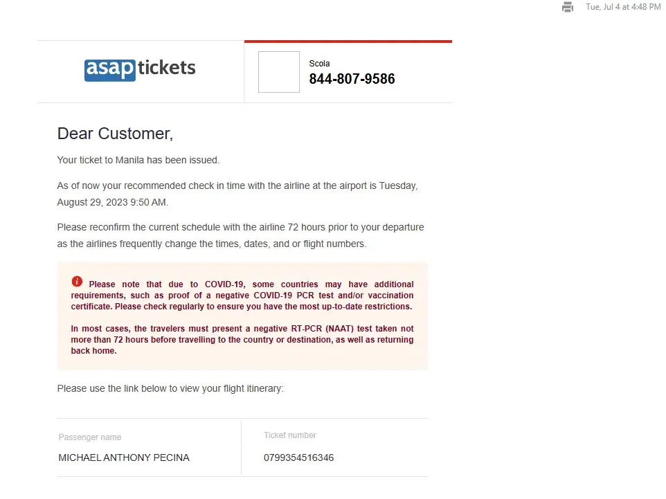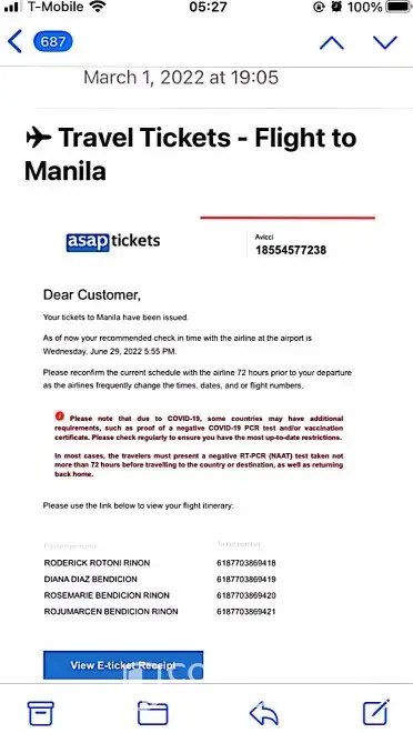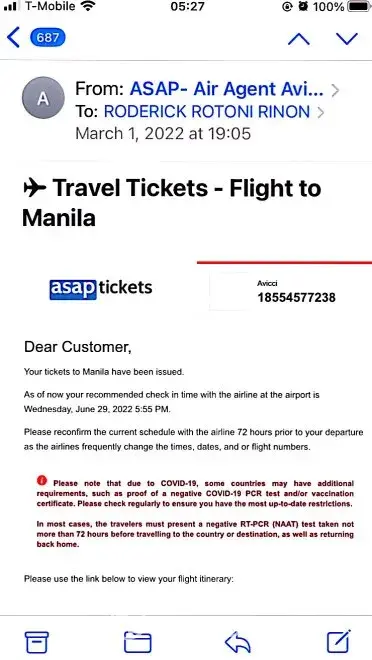 On 3/14/22, I started to check on flight to Manila online.