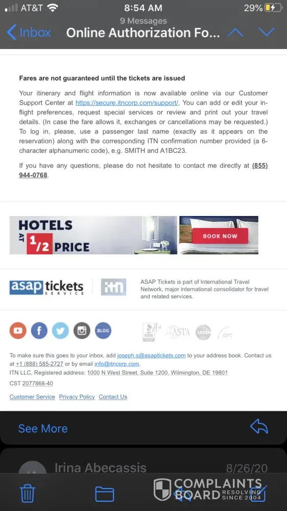 Beware! Do not use this fraudulent company! Most of their agents are professional scammers and thieves. Do not use the following asaptickets agents: joseph s. [protected]) and harrison v. [protected]).