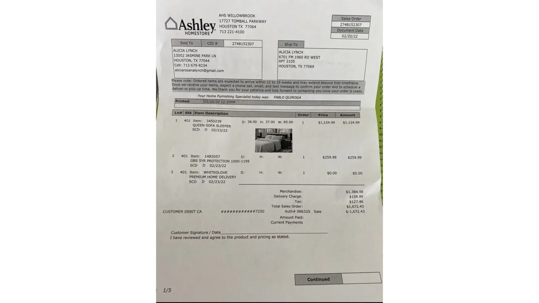 Ashley HomeStore I am complaining about delivery my whole paid furnitures