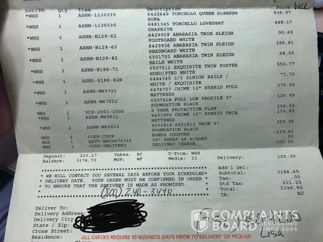 Ashley HomeStore down to the delivery to my pics of furniture being damage.