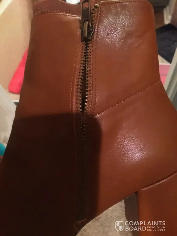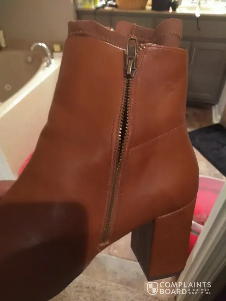 I finally received my boots after waiting longer than the norm and to my surprise the boots were beautiful. I had a meeting to attend Saturday and I got a shirt to go with my boots as I tired to unzip the outer side it wouldn't unzip right it kept getting stuck and jam. So I got them to zip up and I unzip the side with no problem. Go to the meeting and got all kinds of compliments on my boots til one of the ladies realize that my boot was not zip. So I tired to zip it and it wouldn't zip the zipper is mess up on it. This very disturbing because I love my boots. The other boot has no defects.