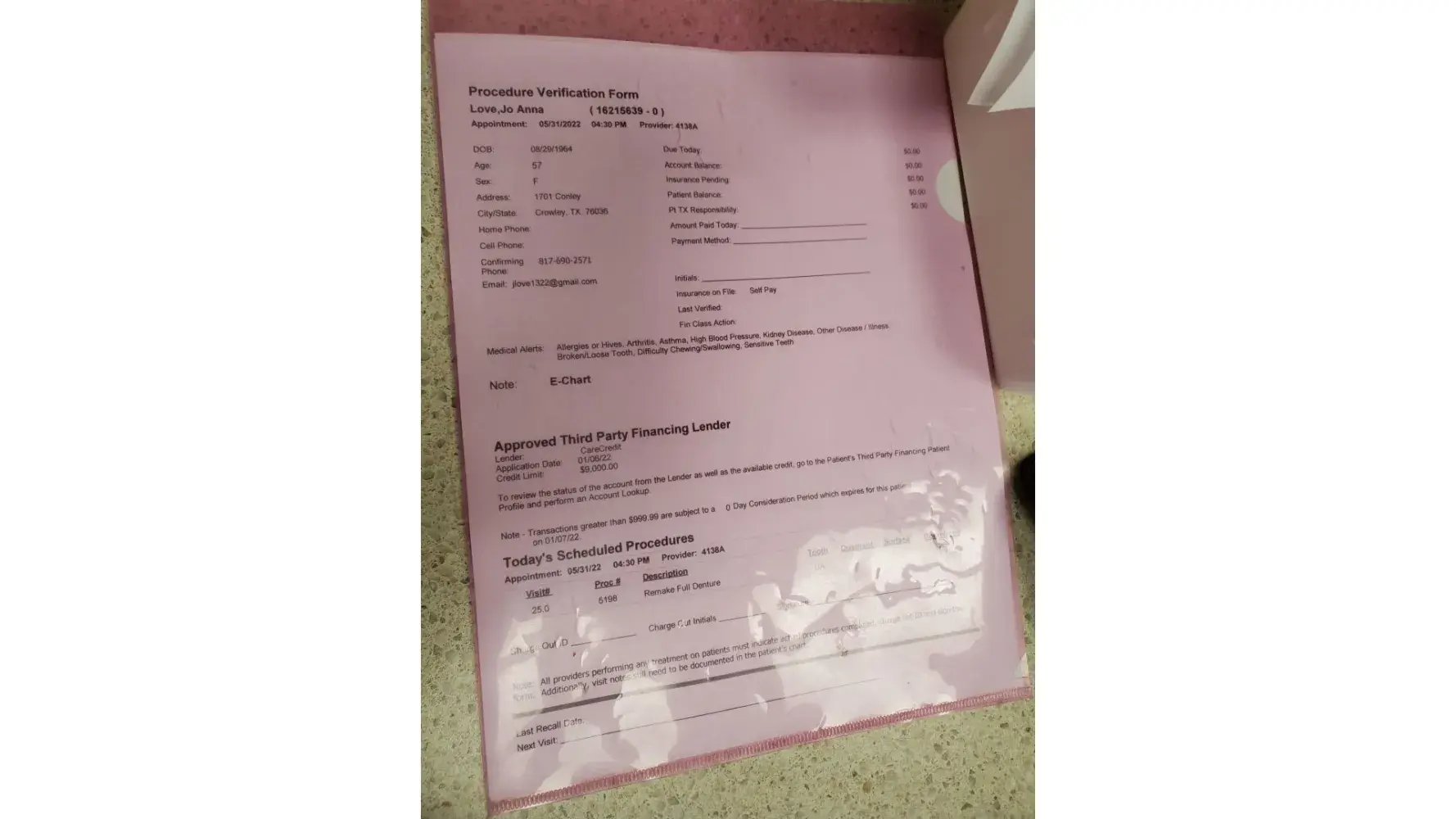Last year, I don't remember the exact date, I went to Aspen Dental. I got a cleaning, an extraction, x rays and later had a mold made for upper and lower partials. When I was supposed to go to get them partials, I had to go out of down on a family matter, then I came down with Covid. When I did get them and the dentist was adjusting them, he saw a sore in...