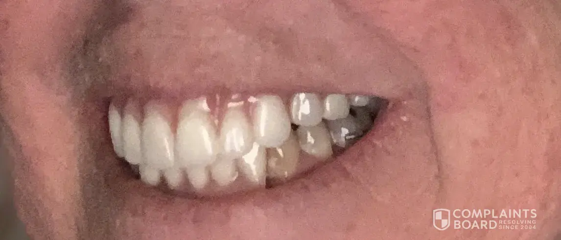 Paid thousands of dollars. First temporary denture was to big for my mouth and they had to make a new one. Then my first permanent denture was beautiful and completely straight but the right side was to far out. They ordered a redue and now the denture is fine on the right side but instead of the teeth being even the right side are long and the left side...