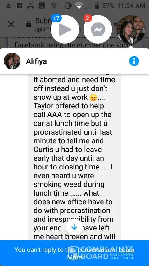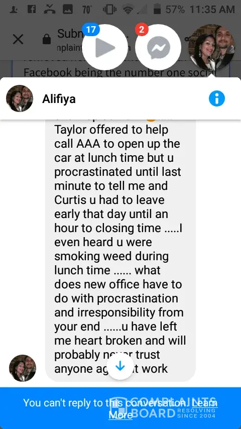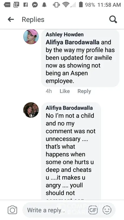 I was an employee of Aspen Dental from July 2013 to May 2019. I have dealt with a lot of stress and discouragement from the Mt Pleasant office. In May I was undergoing some personal health conditions that made me unable to go to work to lead to termination from Dr. Barodawalla. I have nothing but negative feedback from the dentist. I received text messages that were rude, discouraging, and uncalled for. Which I have pictures of them all from text messages. Here recently the dentist had crossed the line and posted personal information of mine on my Facebook page. Down talking me and making me feel less of a person which I took screenshots of before she had removed her comments but with Facebook being the number one social media sight everyone had seen what she had posted. I am hurt. The names she has called me has lead me to believe that I will never be a good enough dental assistant again. I haven't been there since May of this year and I am still receiving negative comments from her that I don't appreciate. To top it off I really do not appreciate being accused of using marijuana and her saying that I lied about how far along I was pregnant. This office was horrible to work for and now I see why the office could never be consistent with having employees. I honestly don't know how I made it as long as I did.