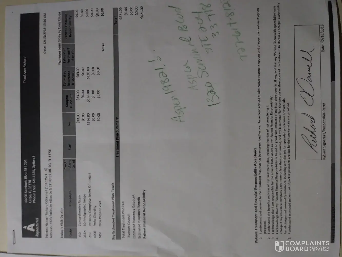 Weeks later, I received a bill from Aspen Dental for $700.00. Aspen told me that my