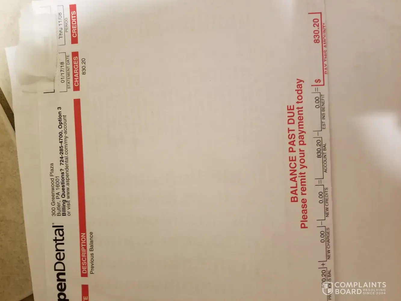 In Jan of. 2018 I got a bill from aspen debtal saying