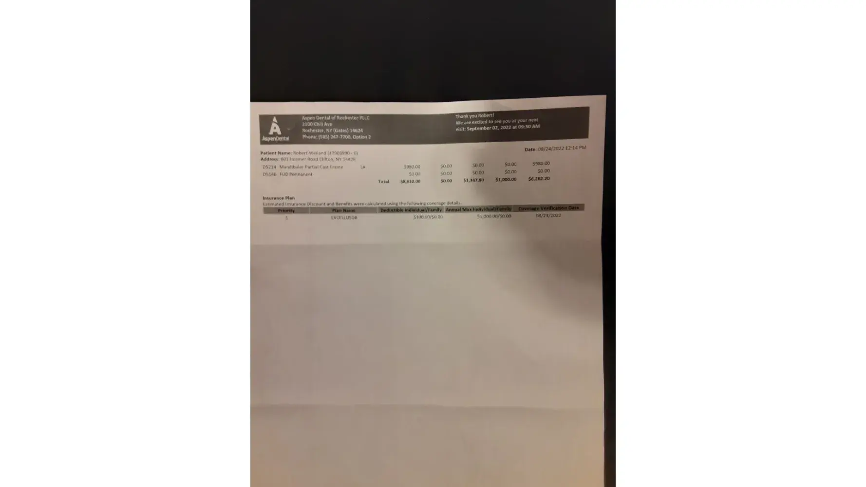 We went to Aspen Dental, Appleton WI last week and are being told we have to pay and ADDITIONAL $3400.00 for the permanent dentures, even