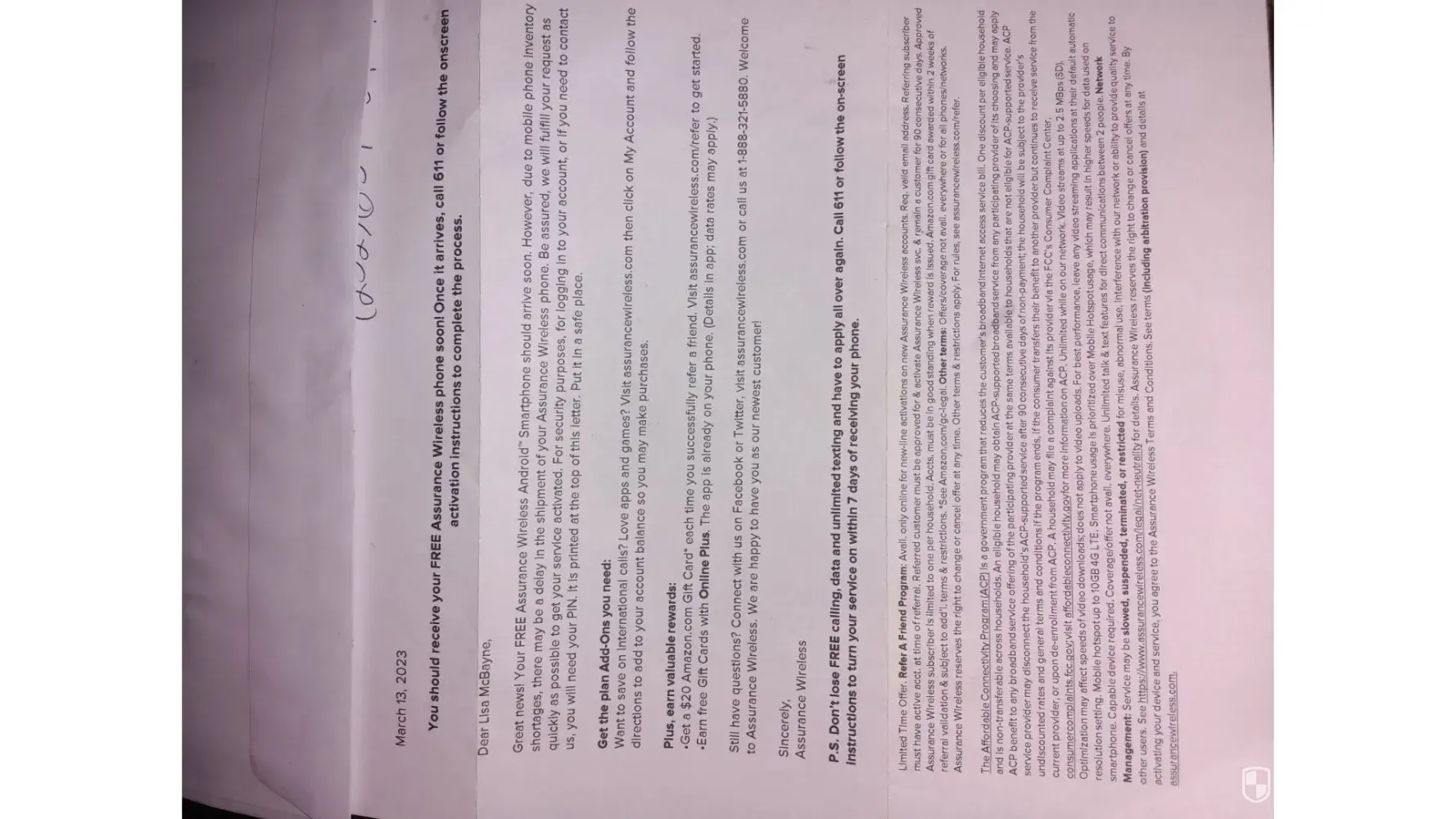 Got so many promises that Assurance Wireless didn't keep. They said I was eligible to receive a brand new phone upgrade from the schôk which is basically a cheap tracfone and not even a legit smartphone. I called and was told a total of 5 times that my new phone was on the way only to find out there was never a free upgrade offered. Finally, because I have filed a complaint with the FCC, I received a call from a Denise Delgado, supposedly a T-mobile president of some such, saying that I did not get a letter from the Assurance Wireless but that I must have gotten a 3rd party offer for the free phone because Assurance Wireless does not offer anybody "free devices". I am so disappointed because after all the back and forth with them and empty promises they still just sent me the same old ugly phone I had!