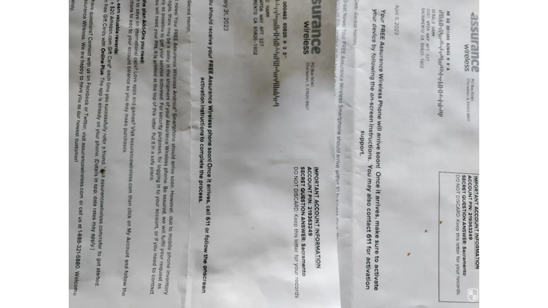 Assurance Wireless A replacement phone. Scam