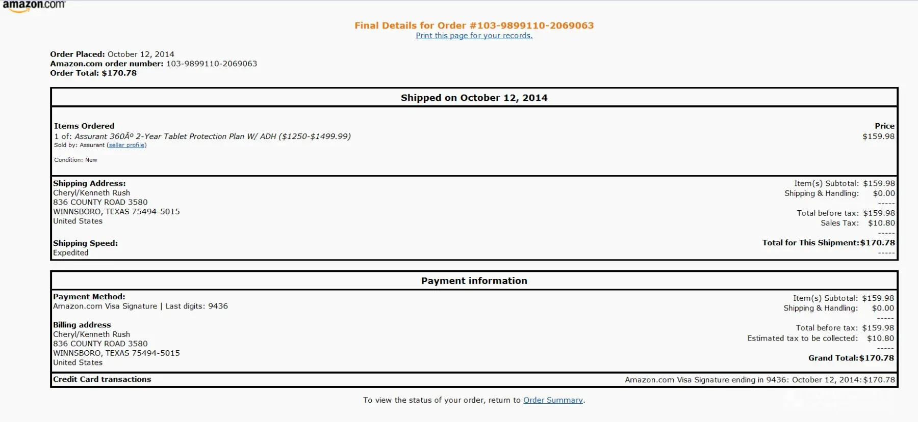 Assurant service contract