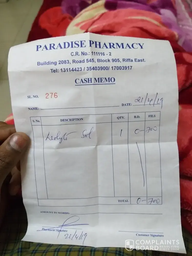 I went to pharmacy and buy some Electrolyte and medicines(flygal)