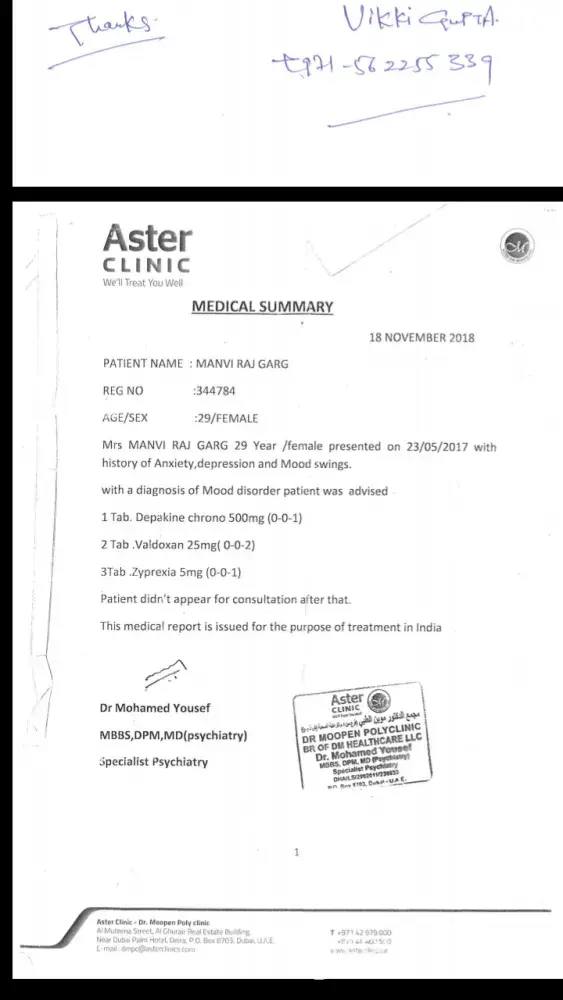 This is Manvi Raj Garg and my registered mobile number is +[protected] kindly do not share any of my personal medical records with my husband vikki gupta as he is misusing my medical records. He has blocked this number and threw me out of Dubai on 1 August 2018 when I lost the job. Criminal cases are pending against him and he is evading the court for an year now; declared a proclaimed offender in India.