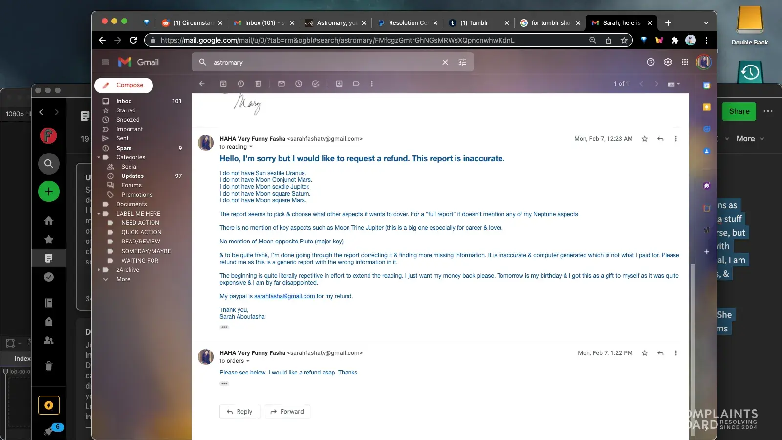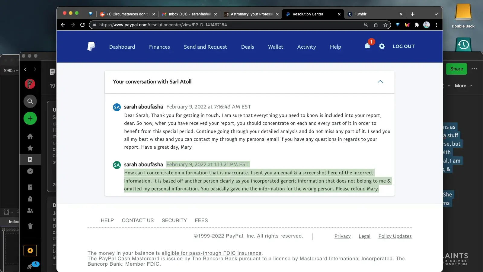 This is my dispute to PayPal along with the screenshot: The report is grossly inaccurate. It is not based off my birth information. Attached is a screenshot of the email I composed & have yet to receive a reply. This is a scam. They said it was a personal full reading when there are many key components are not included, many are false, & it is clear that this is a computer generated report & not a personal one as promised.