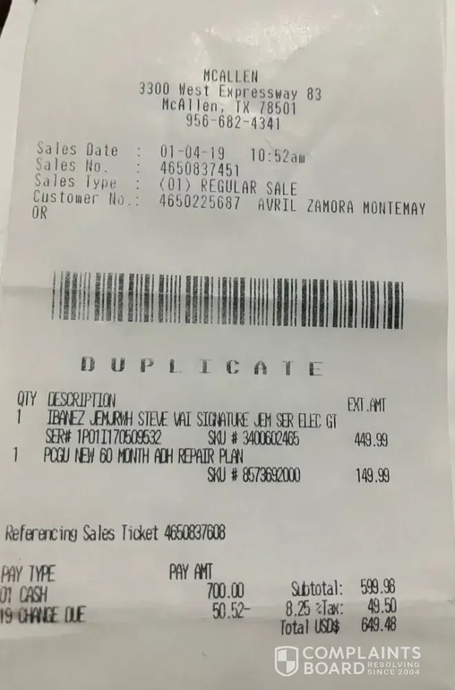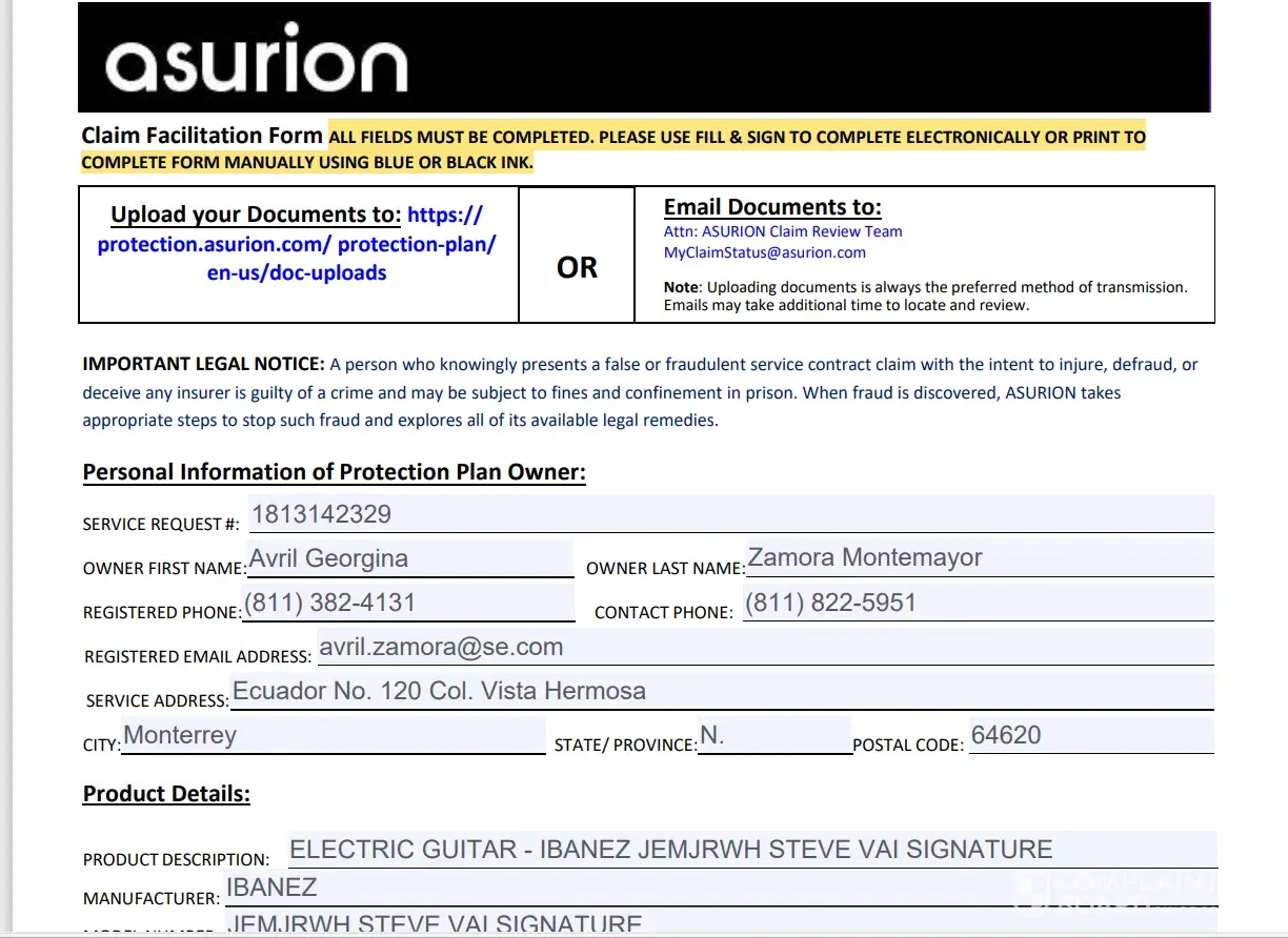 Asurion Electric Guitar acquired at Guitar Center- The claim proceed, but the check never arrived