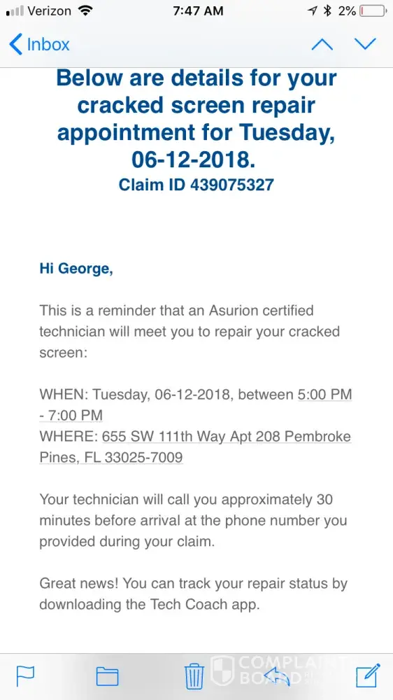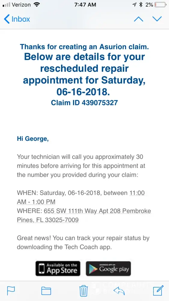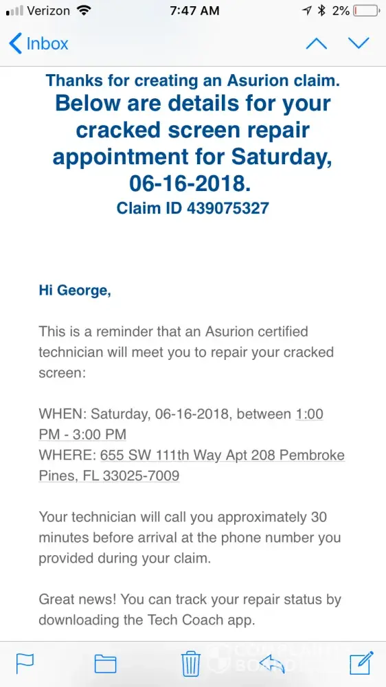 I have heard no response from the Asurion after that.