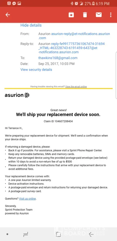 On a positive note, Asurion provides quick replacement devices upon request. On the negative side, however, it can be a huge hassel to return an unused replacement device. My original phone was working by the time I received the replacement phone and instead opted to return the replacement. I have called Asurion three to four times in the last 4 months and I'm constantly met with representatives who are not able to help. My account had already been billed for the replacement device and even though Asurion confirmed that they received my return on May 9th they have still yet to refund the money. Everytime I call a new representative makes me fill out a refund request stating there has not yet one, eben though I assure them I have done this 3 times. There was even one time when the representative hung up on me after I was on hold for 15 minutes. The last representative I spoke to assured me there was no formal way to file a complaint. I wish Asurion had better trained representatives in how to handle similar situations. I have still yet to receive my refund even though I returned their device. We shall see how long this ordeal takes to fix. At this rate, I would have rather just buy a completely new phone instead of going through insurance.