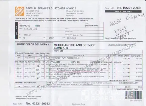 (6) 08/02/2021 Called Home Depot Appliance services protection plan.