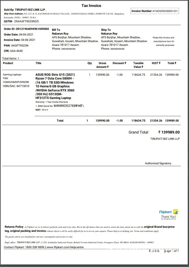 I bought asus rog strix g15 2021 for 1.37lakh INR on 12th of june 2021 but it suddenly stopped working on 3rd august 2021. I contacted asus hotline about the complaint the next day ( 4th of august ) and they assigned onsite service for me but I recivied the call regarding the matter from service center on 9th of august. That day without even appraising my laptop they assumed that it must be a motherboard failure as if it was a common thing for them. They said it would take around 7-8 days for the parts to arrive and since then I waited for 10 days and now today I contacted them and they reploed I need to wait till 1st of sept. For the parts to arrive. I mean, I wasn't even 2 months since I got the product and I wasn't using that laptop for more than 7 hours a day. I bought it on 12th but it reached me on 16th of june and I got to use it from 17th of june. Considering the time I even got to use that laptop. It's not even way more than 1 month and 2 weeks as if it failed exactly after the time period in which I can even apply the consumer act 2015. And now they say I need to wait a whole month to even get it working again? Out of 12 months warranty, 1 month is just wasted? I'm extremely unhappy with asus's services and products and I would like to demand a refund or atleast a replaced for shipping a defective peace. As far as the laptop's condition goes. Except fingerprints due to the material used for the product. There isn't even a single visible scratch on the whole body. It was never dropped or got wet. Even the base rubber for grip is like never used. I always used that laptop over a cushion and treated it with utmost care even more than I do for my own self and it just stopped turning on one day? I feel like my fortune got dumped in a pit. I demand a refund or atleast a replacement at the least. This was the first laptop of my own life. I waited and saved money for 2 years and got a defective peace? I hope you listen to your customers and stop shipping defective pieces to India.