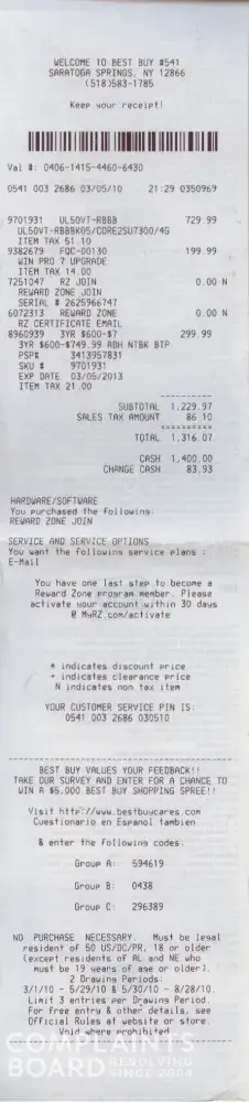 I've included my reciept as an uploaded *. jpg. purchase was made march 5th, 2010. first use of the hdmi was october 2011. it is obvious that either points of the manufactures warranty or the extended warranty is not worth the paper it is printed on. this ul50vt has been to repair 7 times between the manufature and the best buy geek squad. I have recorded the system logs there in proving the hardware replacements stated in the repair reports were never made. I also have the shipping charges recorded from fedex and ups when dealing the 4 times with asus, the manufacturer. I can also provide screen shots of the asus rejecting the hdmi use. this where panasonic viera plasma hd then rejects it. these showing all the proper setting for it's use, set appropreately. again, I have many such proofs. let alone the point of being able to prove it physically here with my equipment. the additional *. jpgs (scanned images & screenshots) and system event logs I also have available if it would better help in the point. but the thing is you have noted here on your form photos. yet altogether contains 415 megs in related files. of course the pictures are now *. bmp files but I can convert them to *. jpgs as I will the reciept. but even at that, I don't believe that will add up to more than 90 megs difference.