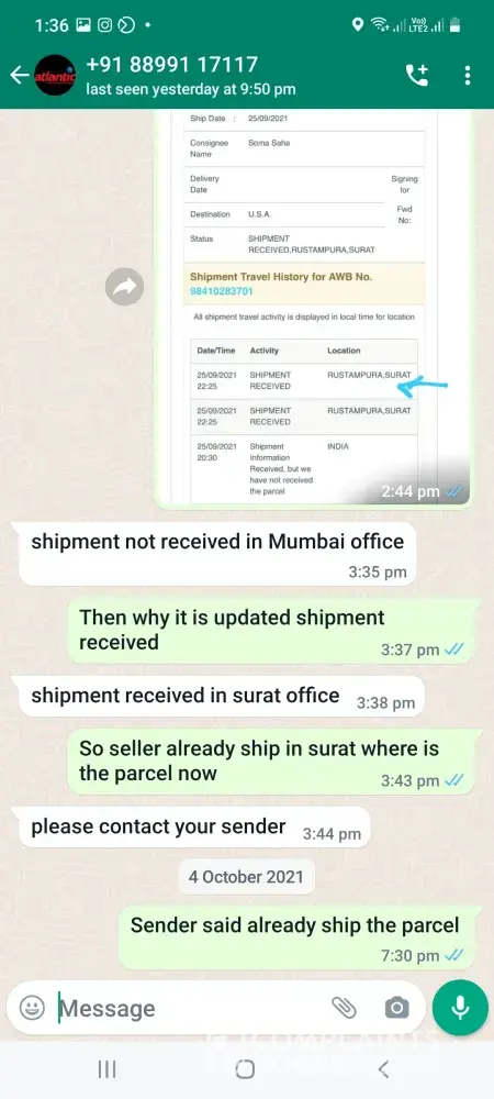 I am complaining about my package which was sent on 15/10/2021
