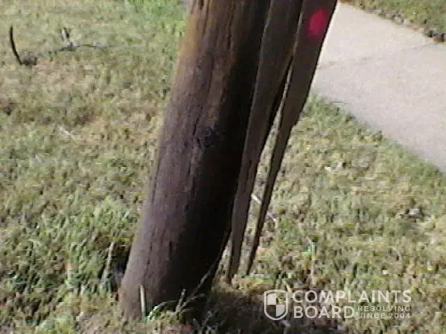 Previously, i asked at&t to send someone out to fix this pole which was hit by a car about 6-7yrs ago. Now this pole is deteriorating and hanging about 3-5 inches away from a large tree branch that could potentially come crashing through my front room once this this give way. I suppose that to at&t techs so long as the line is working it looks good from their home.