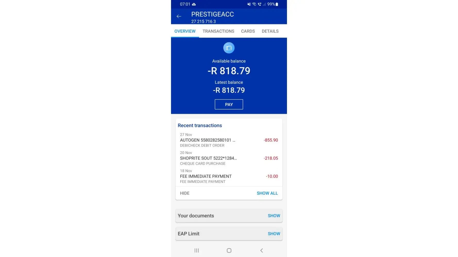Yesterday i was debited 1900 ra'd which now leaves my account in a - 1900 due to insufficient funds. I clearly gave instructions for this to be canceled so now how am i going to sort my account out because of this negligence?