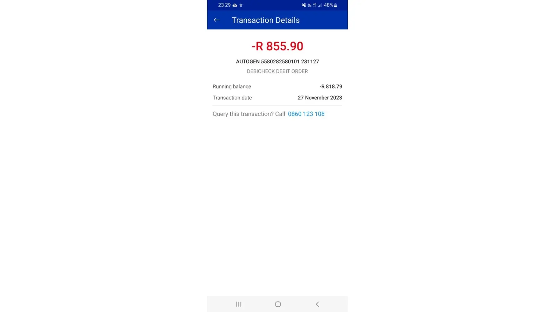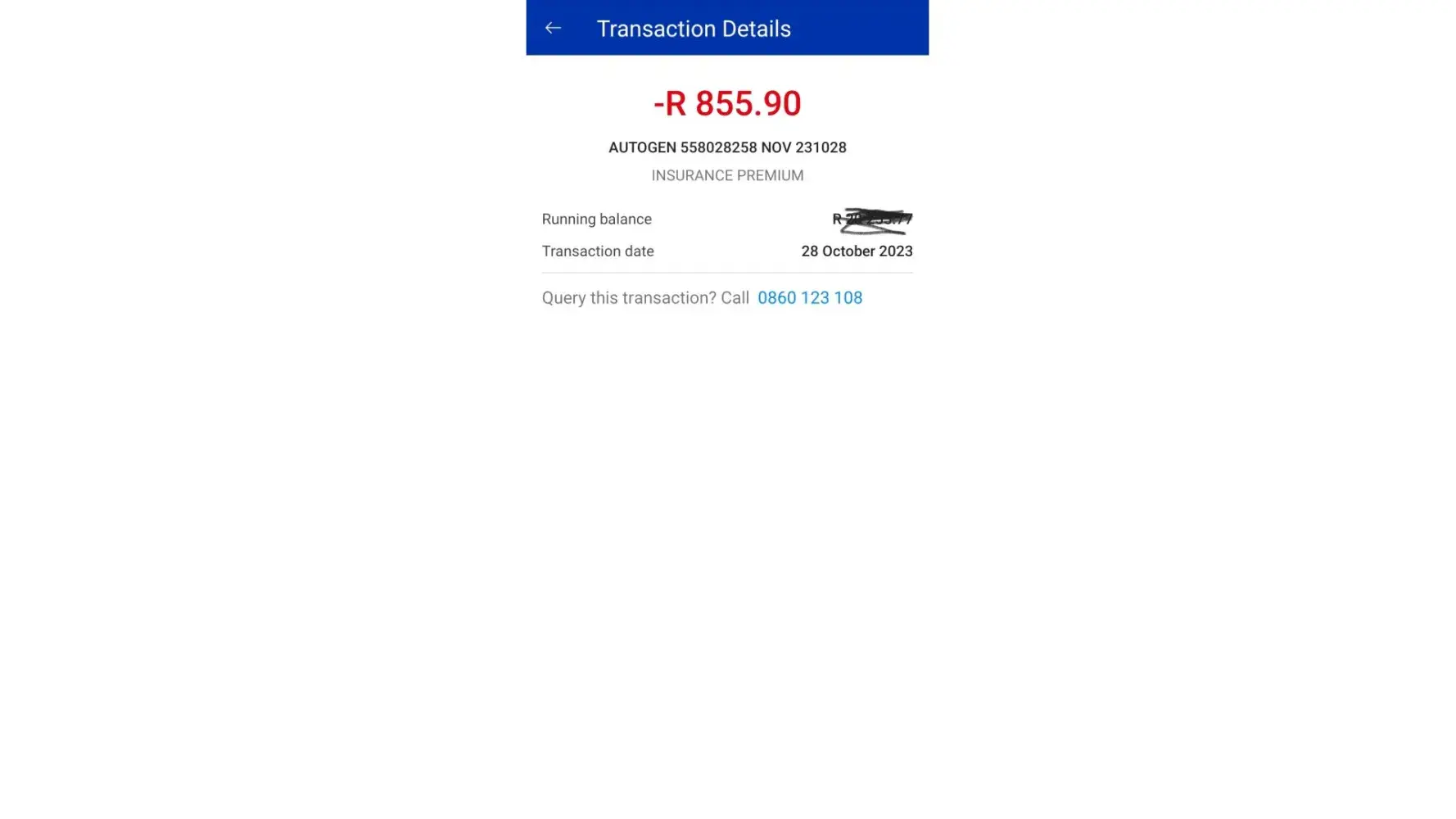 Claimed loss: R855 x2 instalments